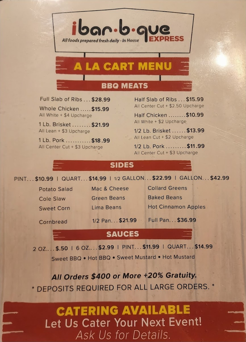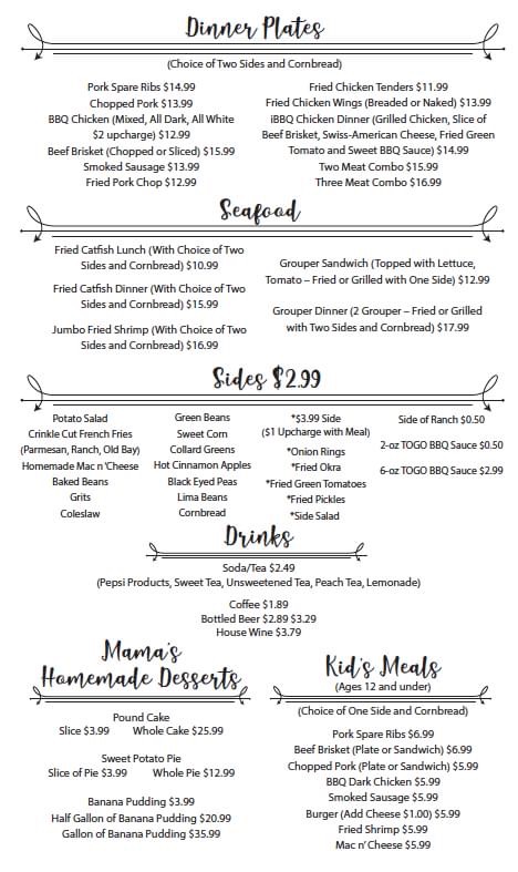 Quart of sides – Choose from a variety of options including baked beans, coleslaw, fried green tomatoes, mac & cheese, and more.