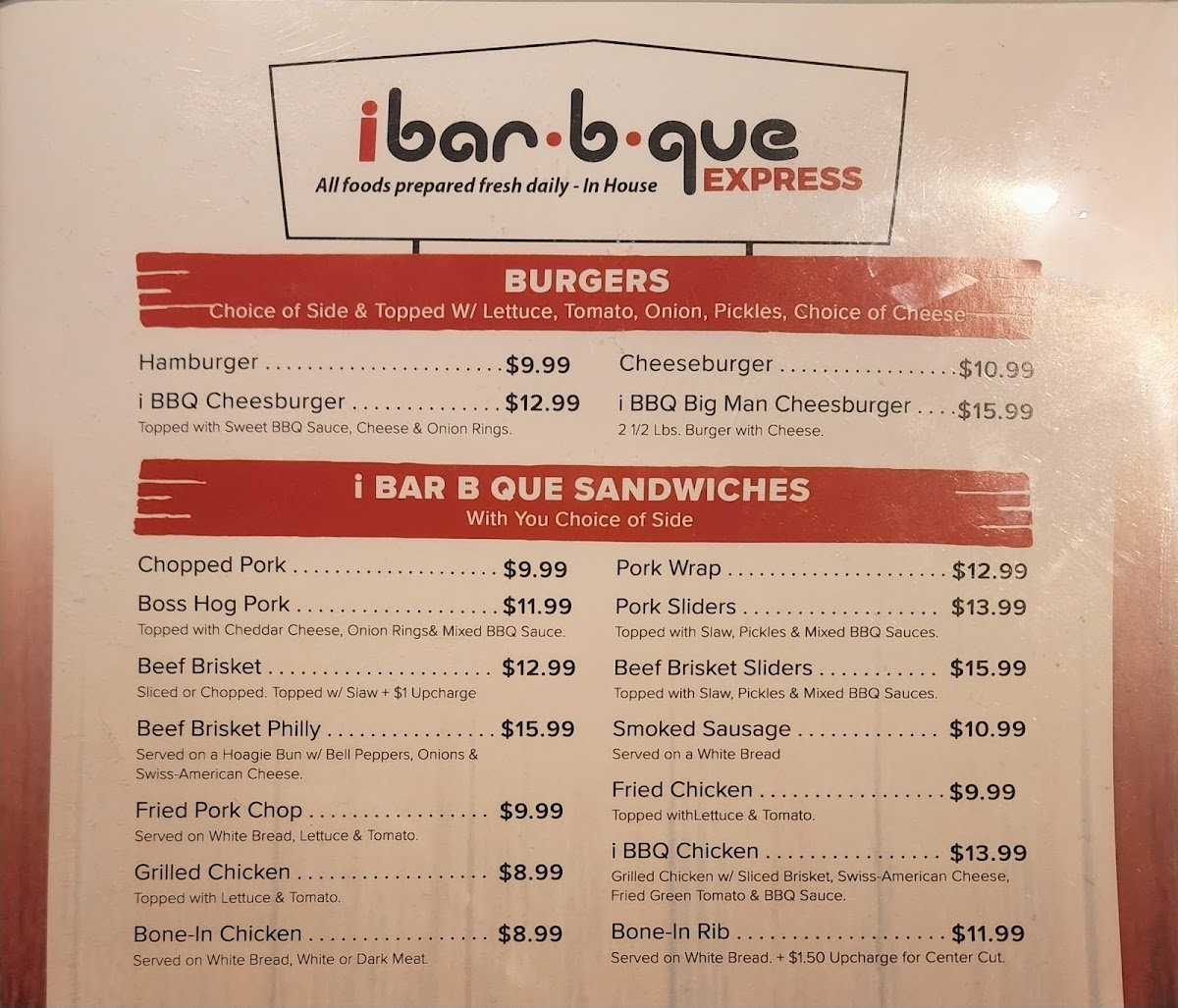 Juicy BBQ chicken. Choose from dark, mixed, or white meat.